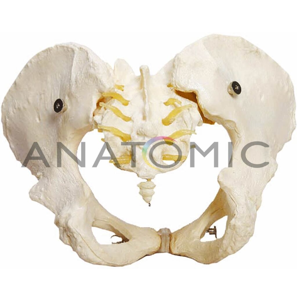 Modelo apresenta estrutura óssea da região pélvica feminina, com detalhes anatômicos realísticos. Confeccionado em resina plástica rígida.