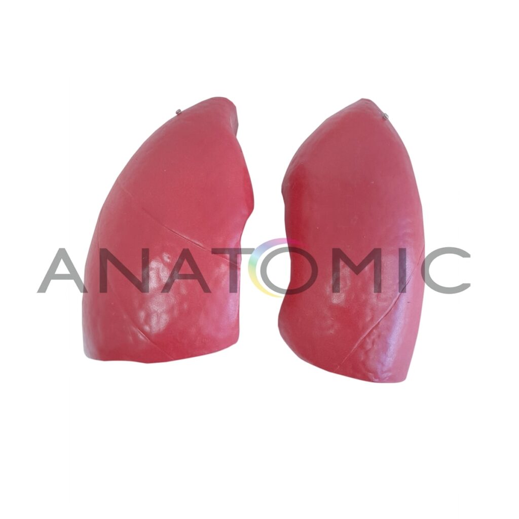 Modelo anatômico dos pulmões, em corte frontal, evidenciam estruturas internas como: veias, artérias e brônquios. Desenvolvido para estudo e demonstração, o modelo pode ser desmontado em até 4 partes.