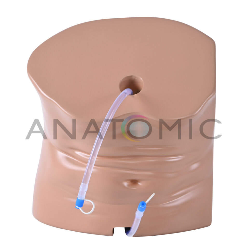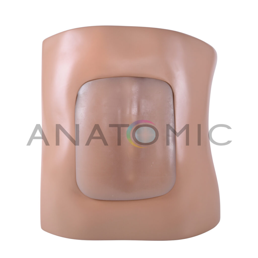 - O modelo possibilita a realização integral da punção lombar e da punção peridural guiada por ultrassom, abrangendo a aplicação de anestésico local, punção nos espaços peridural e/ou subaracnoide, cateterismo, injeção de anestésico simulado e medição da pressão intracraniana, entre outras etapas. O ultrassom pode ser utilizado para localizar e escolher o ponto de inserção e o ângulo da sonda, além de estabelecer a profundidade no ligamento amarelo, no espaço peridural e no sulco espinhal.