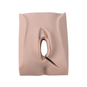 Modelo que simula três tipos de incisões de episiotomia com cortes perineais variados, incluindo incisão mediana, incisões laterais esquerda e direita. Apresenta aparência e sensação tátil realistas, sendo indicado para o ensino e treinamento de procedimentos de incisão e sutura perineal.