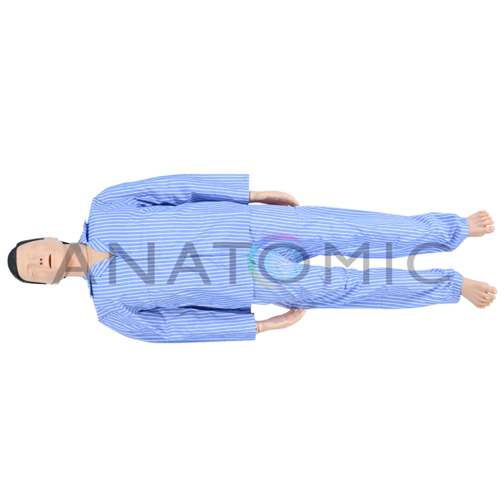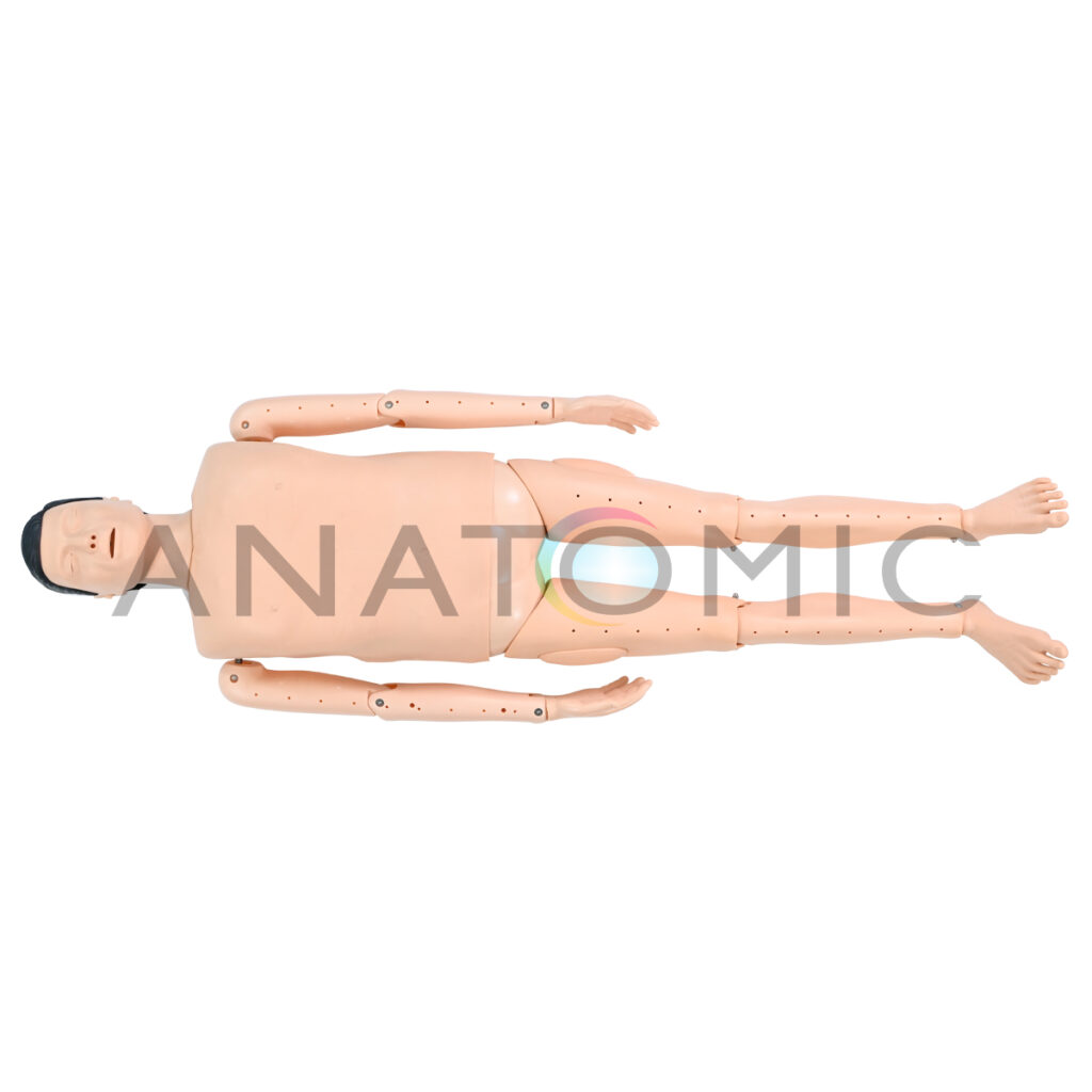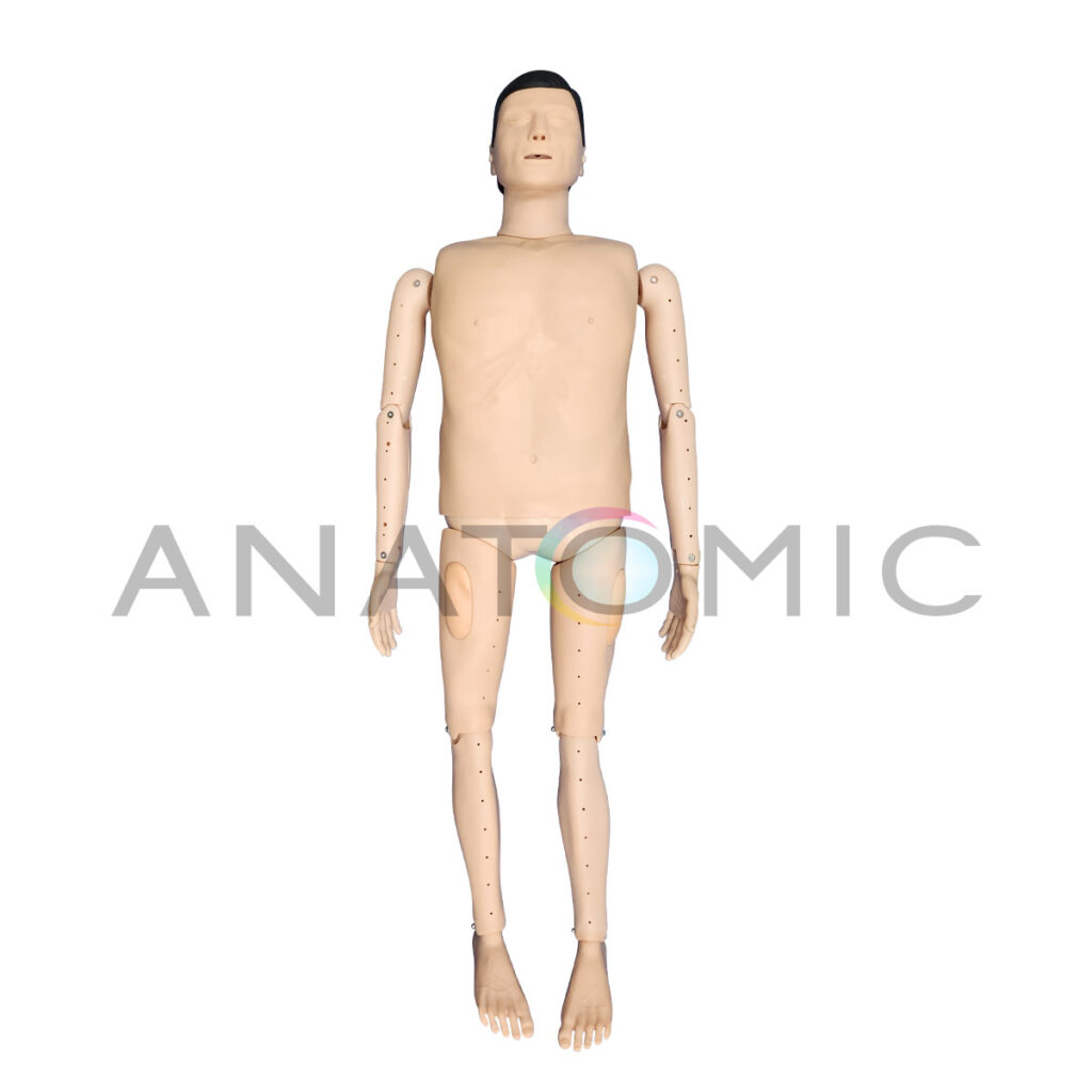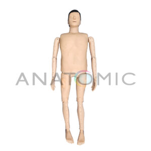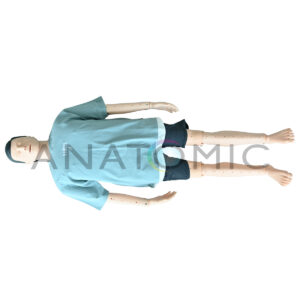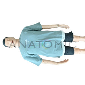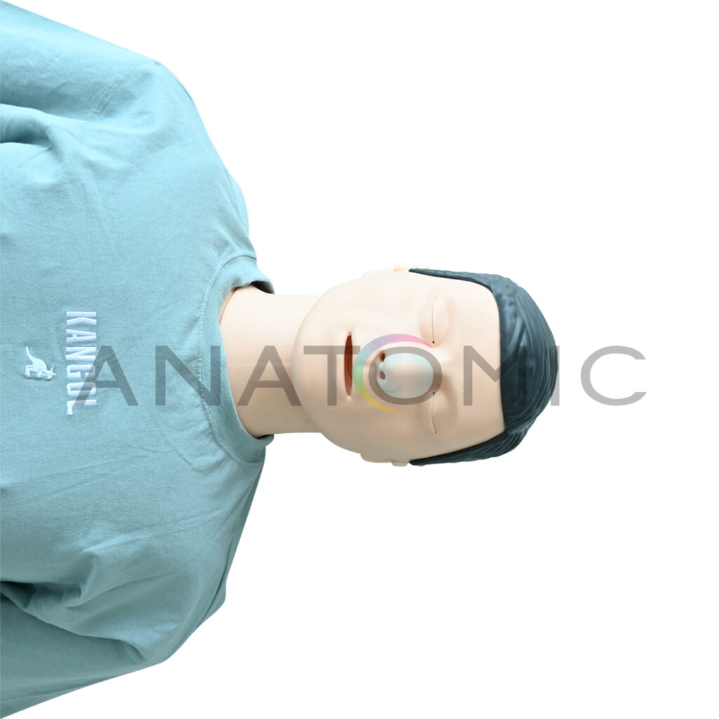 Simulador em tamanho real, desenvolvido para o treinamento prático de resgate de afogamento e reanimação (RCP). Sua estrutura robusta e características anatômicas realistas (incluindo rosto com marcas precisas e textura tátil) garantem que os alunos possam praticar o salvamento com alta fidelidade, precisão e segurança. O manequim é confeccionado em material resistente, com a conveniência de ser facilmente desmontável e ter componentes substituíveis. A funcionalidade é aprimorada pelos movimentos livres e complexos das articulações dos membros superiores (ombros, cotovelo e punho), que permitem simular o corpo de uma vítima flutuando e são essenciais para o treino correto das técnicas de reboque e salvamento aquático. Além disso, a via aérea inclui um componente que simula a obstrução/água, crucial para a prática das manobras de desobstrução necessárias pós-resgate.
