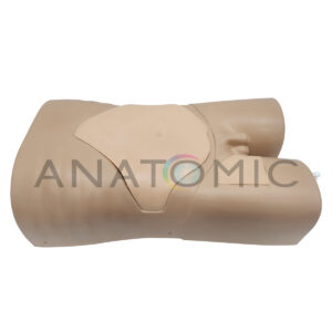Simulador de tronco masculino com características realista projetado para treinamento de técnica de ultrassonografia abdominal.