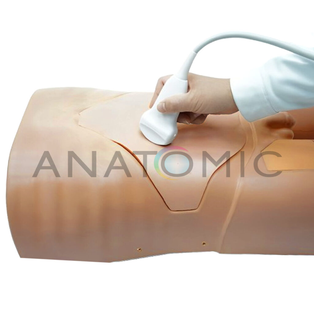Simulador de tronco masculino com características realista projetado para treinamento de técnica de ultrassonografia abdominal. Ele oferece uma solução eficaz para preparar os alunos para exames de rotina do abdômen, incluindo: percussão, diversas punções sob orientação de ultrassom e leitura de imagens de ultrassom. O realismo do produto e o conjunto de habilidades específicas para técnicas de exame abdominal trarão competência e confiança aos alunos.