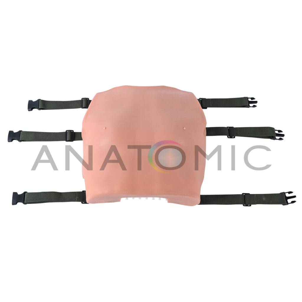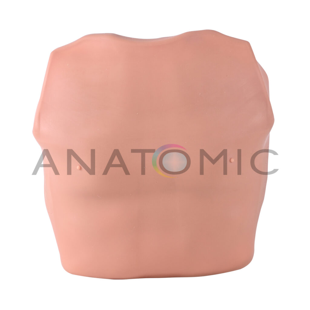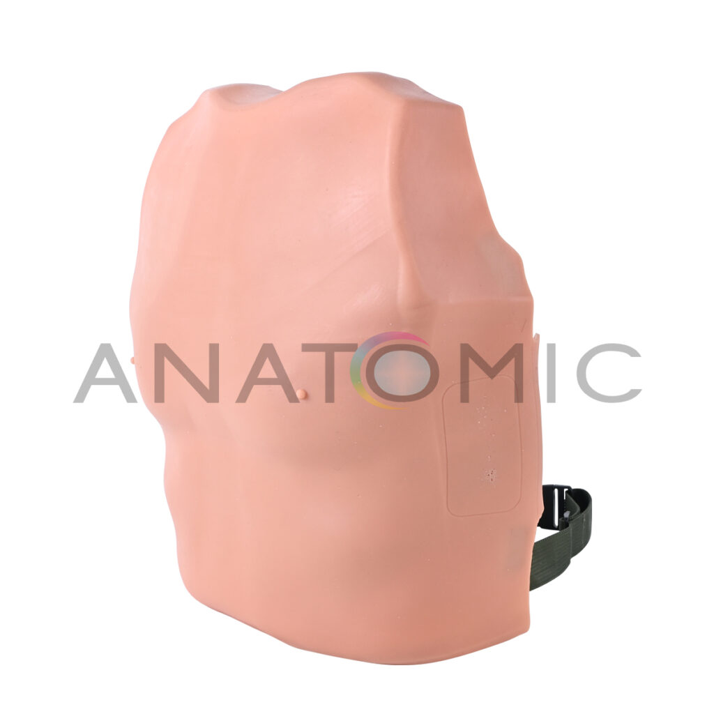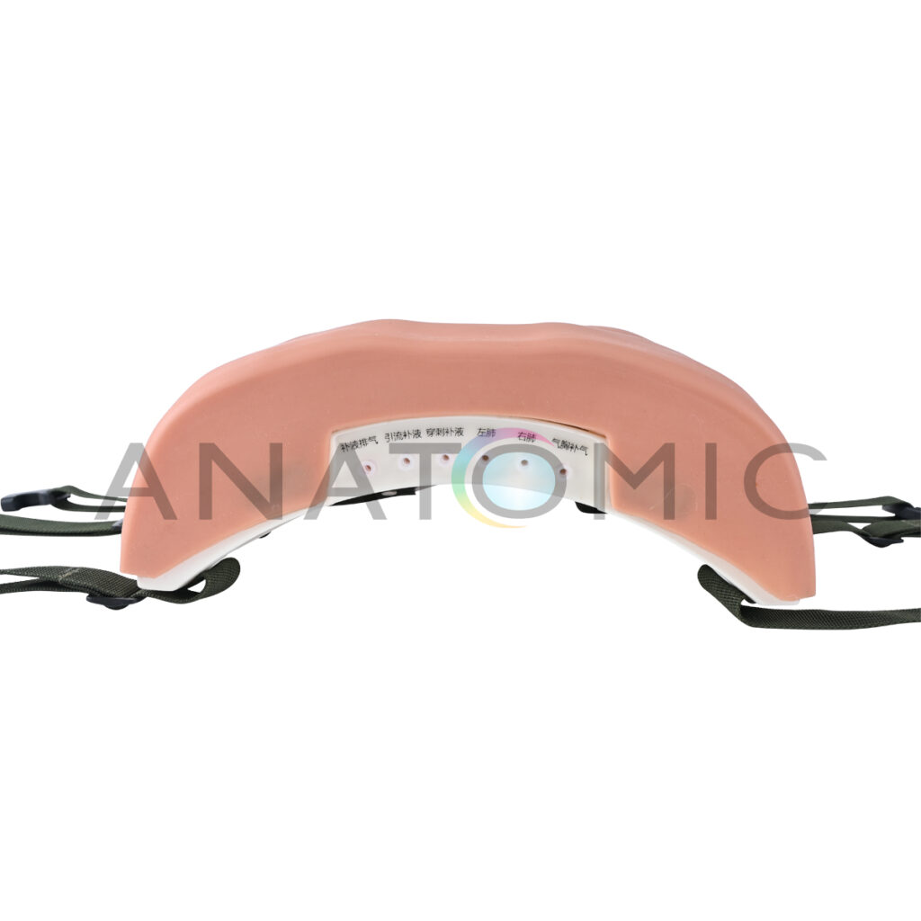 Modelo desenvolvido para o treinamento de toracocentese, podendo ser utilizado tanto em pessoa real quanto em manequim. Permite a inserção de um tubo de drenagem e a remoção de líquido real. Exibe estruturas anatômicas do tórax com aparência realista e marcações nítidas, sendo indicado para treinamento em procedimentos de punção descompressiva para pneumotórax e hidrotórax, drenagem fechada de hidrotórax e prática de cuidados pós-operatórios com tubo de drenagem. Apresenta estrutura sólida, funcionamento realista, durabilidade e resistência à deformação durante desinfecção e limpeza.