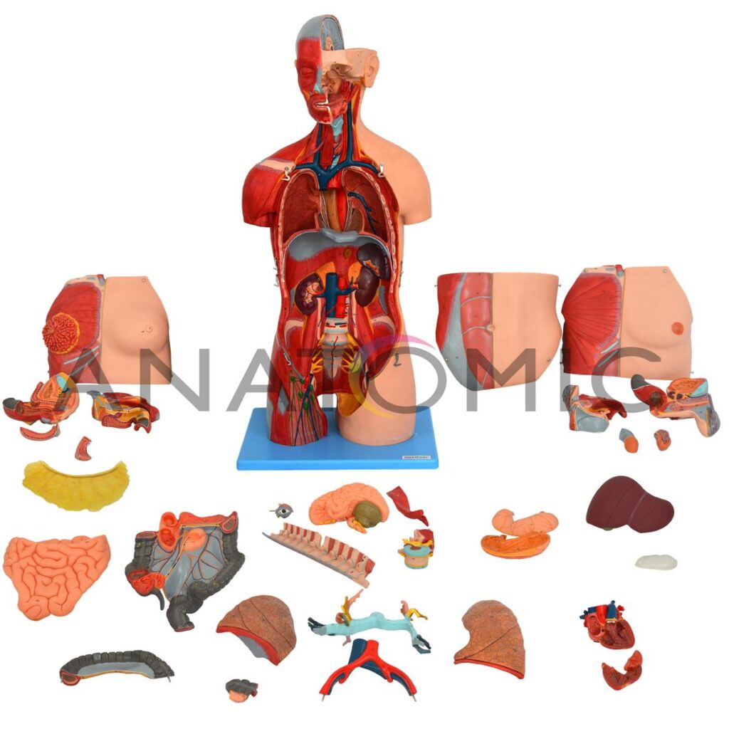 - O estudo da anatomia do corpo humano através do modelo de torso altamente didático.
